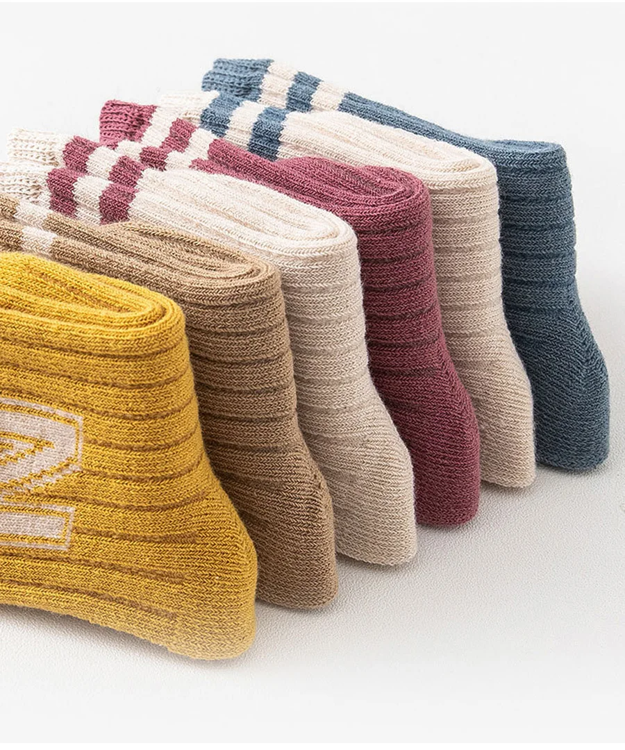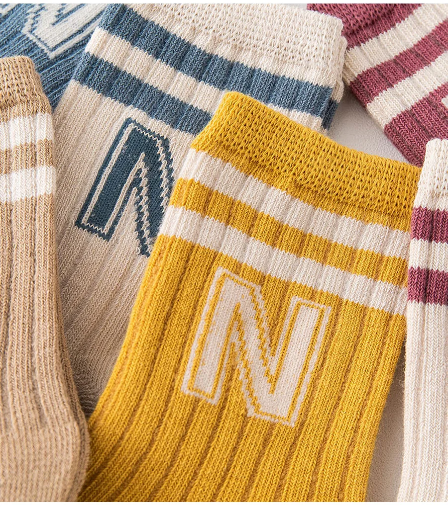 3 Pairs Baby Letter Socks Knit Soft Cotton Sock Kids Long Knee High Socks Infant Toddler Baby Boys Girls Cute Stripe Socks