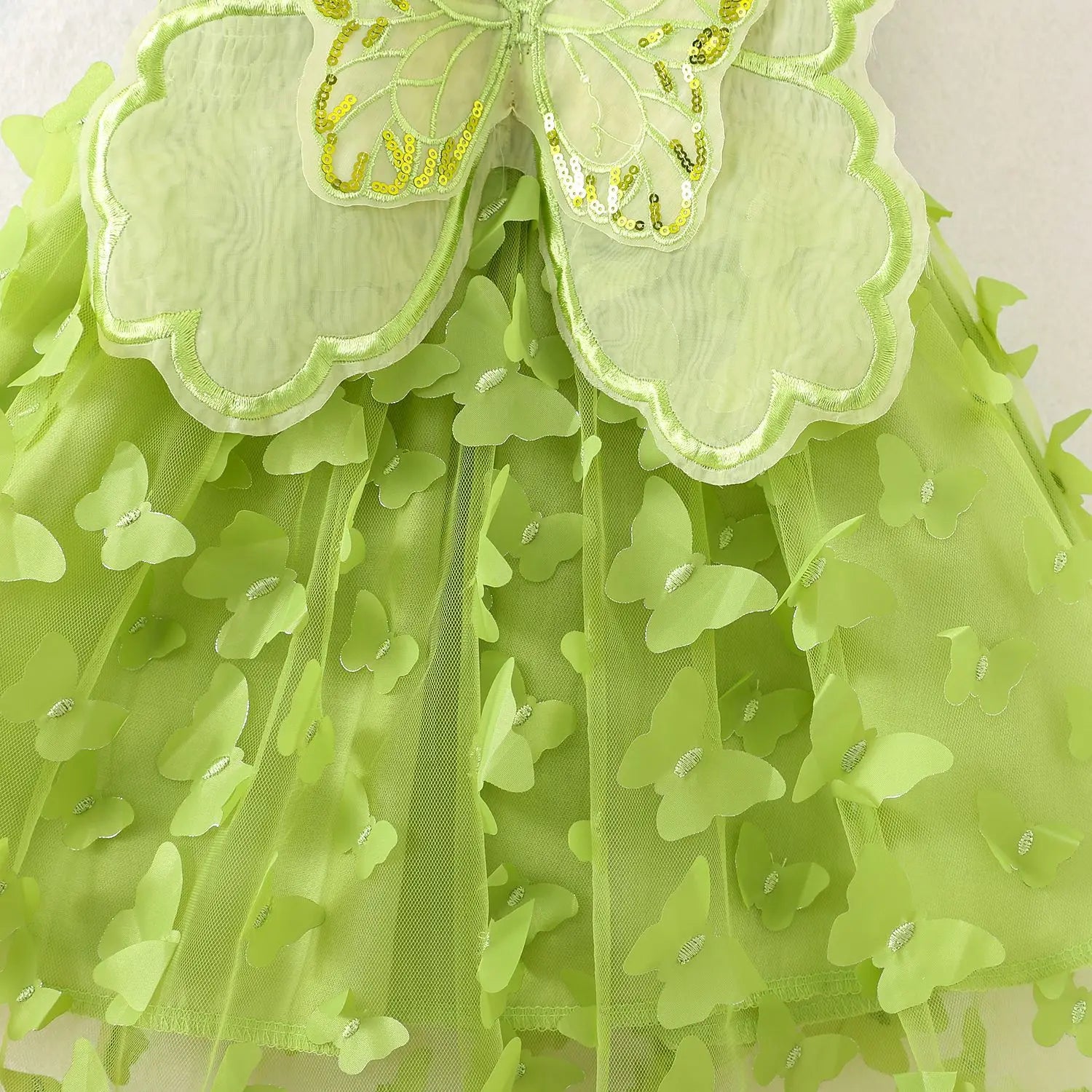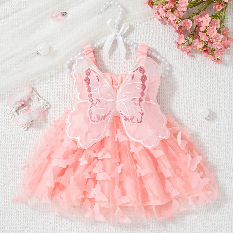 Girl Kid's Dress Summer Butterfly Pattern Solid Color Halter Puffy Baby Girl Dress Cute Gorgeous Baby Clothes Girl